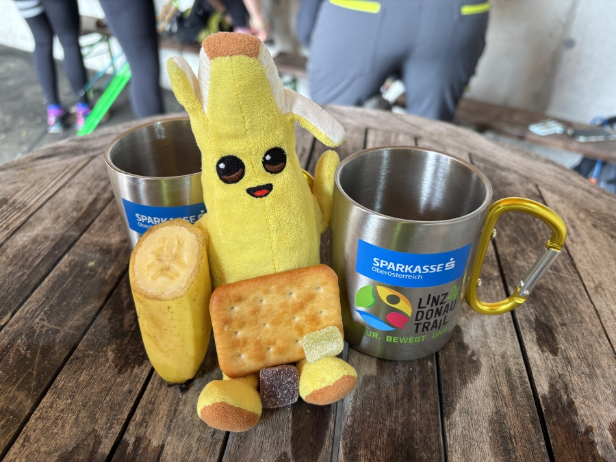 Mit dem Papa Taxi geht’s diesmal in die Linzer Tabakfabrik. Neuer Stand von Start und Ziel ist heuer dort. Ich kenns ja von diversen Ausstellungen aus der Schulzeit und fühl mich gleich wieder wie dahoam. Relativ flott holen wir die Startnummern und können, wie immer, alles was wir als Starterpack bekommen bequem verstauen oder schon vor dem Start futtern. Nachhaltigkeit wird beim Donautrail großgeschrieben und dies finden wir echt klasse. Keine unnötige Werbung- kein Klumpt das ma sowieso nur wegschmeißt- Alubecher, Stirnband, Startnummer, Müsliriegel- Mehr braucht ma sowieso nicht.