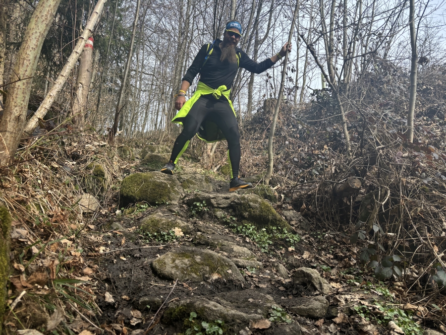 Wir laben uns schon etwas länger und machen uns nach ganz viel Mohnstrudel auf zum letzten Stück…. „Horrorstück NR 2“ der Prinzensteig. Er ist diesmal nicht so gatschig und rutschig wie beim letzten Mal, aber trotzdem nicht weniger gefährlich. Man ist müde und ausgelaugt, die Konzentration lässt nach und die Krämpfe in den Beinen setzten ein…. Da ist der Steig nochmal eine Herausforderung. Eine nette Wanderin beglückwünscht und zu unserer Leistung bisher und meint wie man überhaupt so weit laufen kann. Horst meint:“ In der Ebene und bergab geht’s schon. Aber bergauf und da den Steig kann man sowieso nicht laufen.“ Wie von Zauberhand beschworen springt ein graziler Läufer im Tempo einer Gazelle an uns vorbei und wir sehen nur die Wolken wie beim Speedy Gonzales aufsteigen…. Ok na dann wäre Laufen doch möglich gewesen….Beim nächsten Mal dann. Am Steig merken wir schon, dass es, wenn wir in dem Tempo weitermachen, nix wird mit dem Unterbieten der Zeit. Aber Sicherheit geht vor und somit bleiben wir im Wanderschritt und schneller wär‘s sowieso nicht mehr gegangen. Als wir dann ins Zaubertal kommen, merken wir wie müde wir eigentlich sind. Diesmal muss ich wenigstens nicht vor Verzweiflung heulen, aber überglücklich bin ich auch ned. Ein Berg und ein Kreuzweg und ein Stufenstück und dann nochmal durch die Innenstadt…. Wieder mal wird uns bewusst, was wir uns noch antun müssen, um endlich ins Ziel zu kommen…. Jetzt merken wir wie weit 55km wirklich sind…..